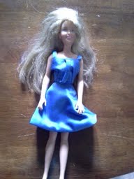 Anyway, as I was saying, I had a date with my favorite girl to play Barbies today. We pulled out the classic Rubbermaid tub filled to the brim with half naked dolls, whatever tiny worthless accessories were spared from death by trash or heating vent, and tangled masses of whatever the heck their hair is made out of.